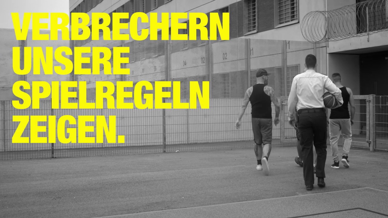 Gefängnisse sind bisher nur wenigen als attraktive Arbeitsplätze bekannt. Das soll sich ändern: Die HR-Kampagne für das Land Baden-Württemberg zeigt die zwei Welten die am Arbeitsplatz einer Justizvollzugsanstalt aufeinander treffen: Freiheit und Gefangenschaft – an deren Schnittstelle Justizvollzugsmitarbeiter tagtäglich stehen. Schwarz/weiß steht für die Härte des Gesetzes, Farbe für die Maßnahmen und Hilfestellungen zur Resozialisierung der Häftlinge. Beide Welten vereint das sinnstiftende Motto der Kampagne: „Im Dienst der Gerechtigkeit“ arbeiten die Justizbeamten für den Schutz der Allgemeinheit und die Vorbereitung der Gefangenen auf ein Leben ohne Straftaten.